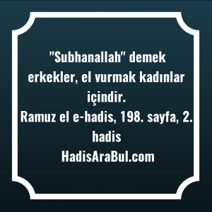 Hadis Metni: "Subhanallah" demek erkekler, el vurmak kadınlar içindir.